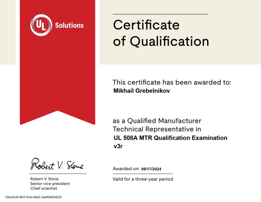 С моей стороны возможно как сопровождение сертификации UL, так и разработка (омологация) изделия по требованиям UL. Работу по проектированию (омологации) изделия проводит специалист с подтвержденной UL квалификацией — Михаил Гребельников: